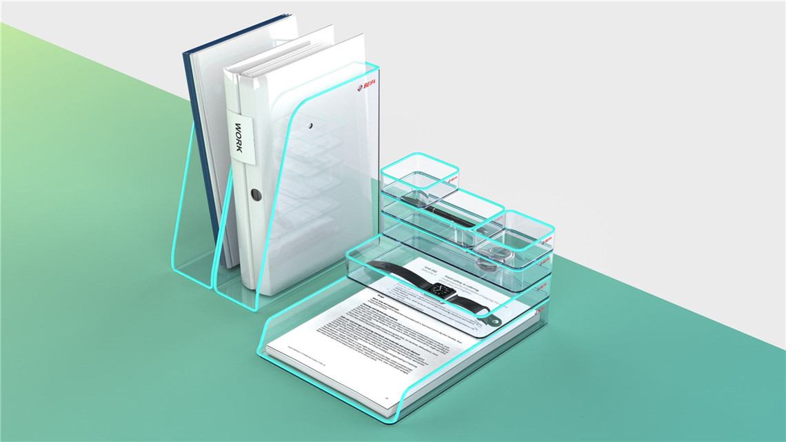 文具收纳套装的设计,本质上是对桌面办公环境的规整。越简单越清晰的产品,越是惹人喜欢。在设计这款系列收纳盒的时候,