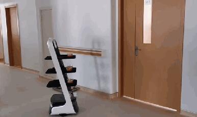 开障碍物以及自主充电等功能。工作时,医护人员只需将要递送的物品放置在其货仓中,告诉它要去到哪个病房,它便