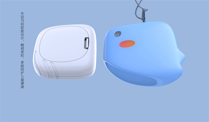 这样的造型没有任何尖锐棱角,通体圆润如玩具,孩子第一眼便会被这个“会发光的小鲸鱼”吸引,主动要求佩戴。