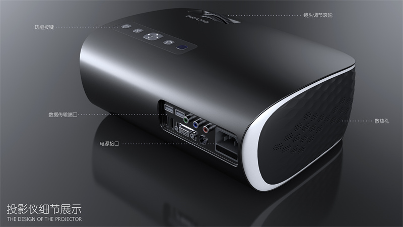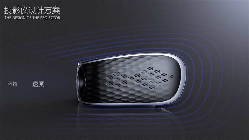 两侧微微隆起的 “肌肉线条”,不仅赋予产品雕塑般的立体感,更巧妙隐藏了内部散热结构 —— 这种设计既打破了传统投影仪方正刻板的形态,又让科技感从冰冷的参数转化为可感知的视觉张力。