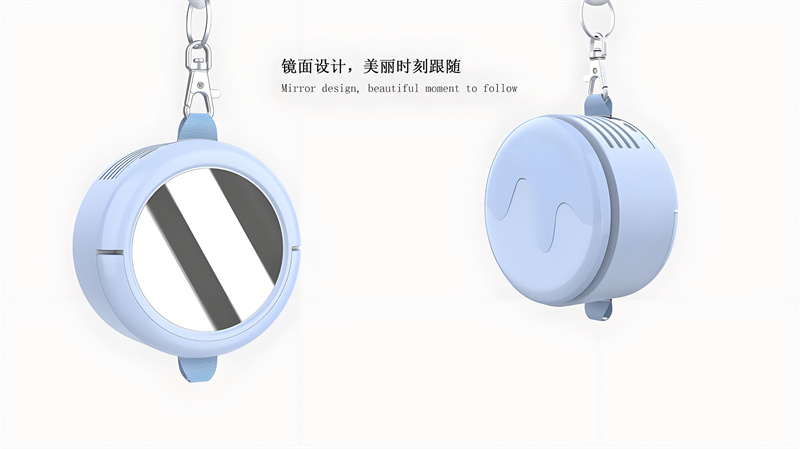 从颈间的自由清凉、镜面的实用巧思、简约的视觉愉悦,到轻盈的贴心陪伴,这款便携式风扇的设计都源于对日常细节的关注。