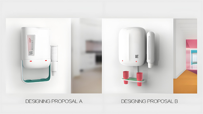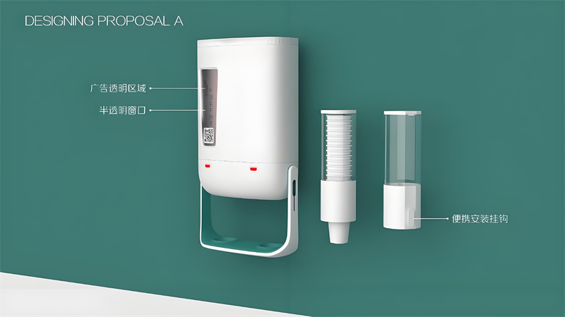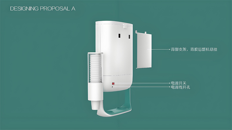 设计首先源于功能。考虑到茶饮机需要挂墙安装,我们设计了稳固的背胶式固定架,力求安装简便又可靠。