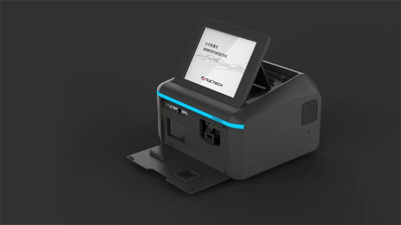 边缘嵌入的蓝色工作指示灯,如冷静的科技脉搏,直观传递设备运行状态,其理性色调也与检测工作的精确特质相呼应。