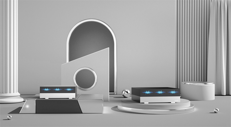功放器以沉稳的立方体为基座,传递声音输出的可靠感。