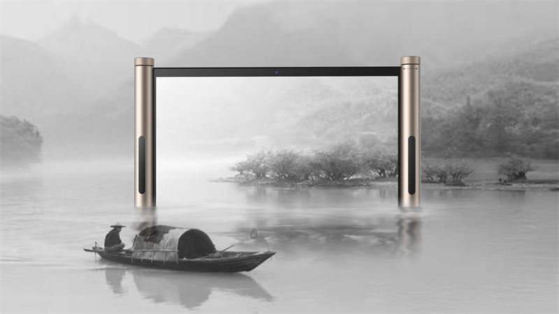 屏幕两侧的金属立柱如古籍卷轴,展开的屏幕恰似徐徐铺陈的画绢。