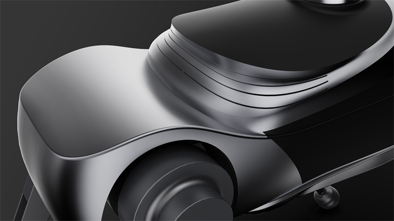 整机以深色和金属色为主,外观简洁且结构外露,突出机械本身的功能性和技术质感。