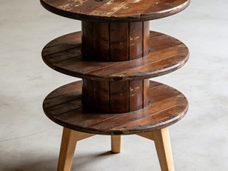一个旧线盘被设计师改造成各种实用家具